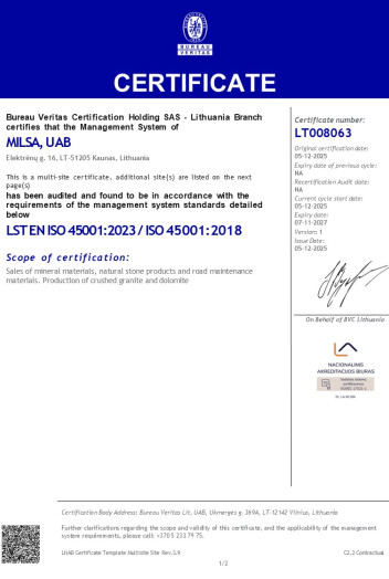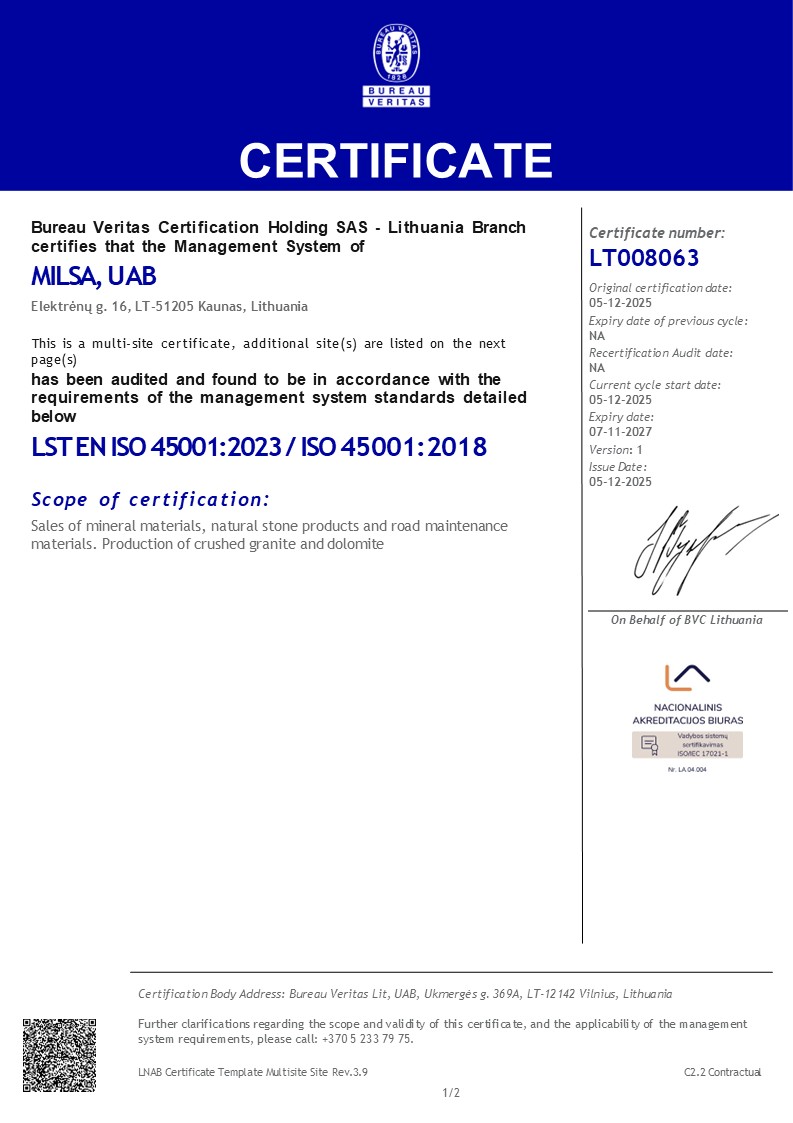 The company is a member of Milsa ir Ko Association Aggregates Producers.