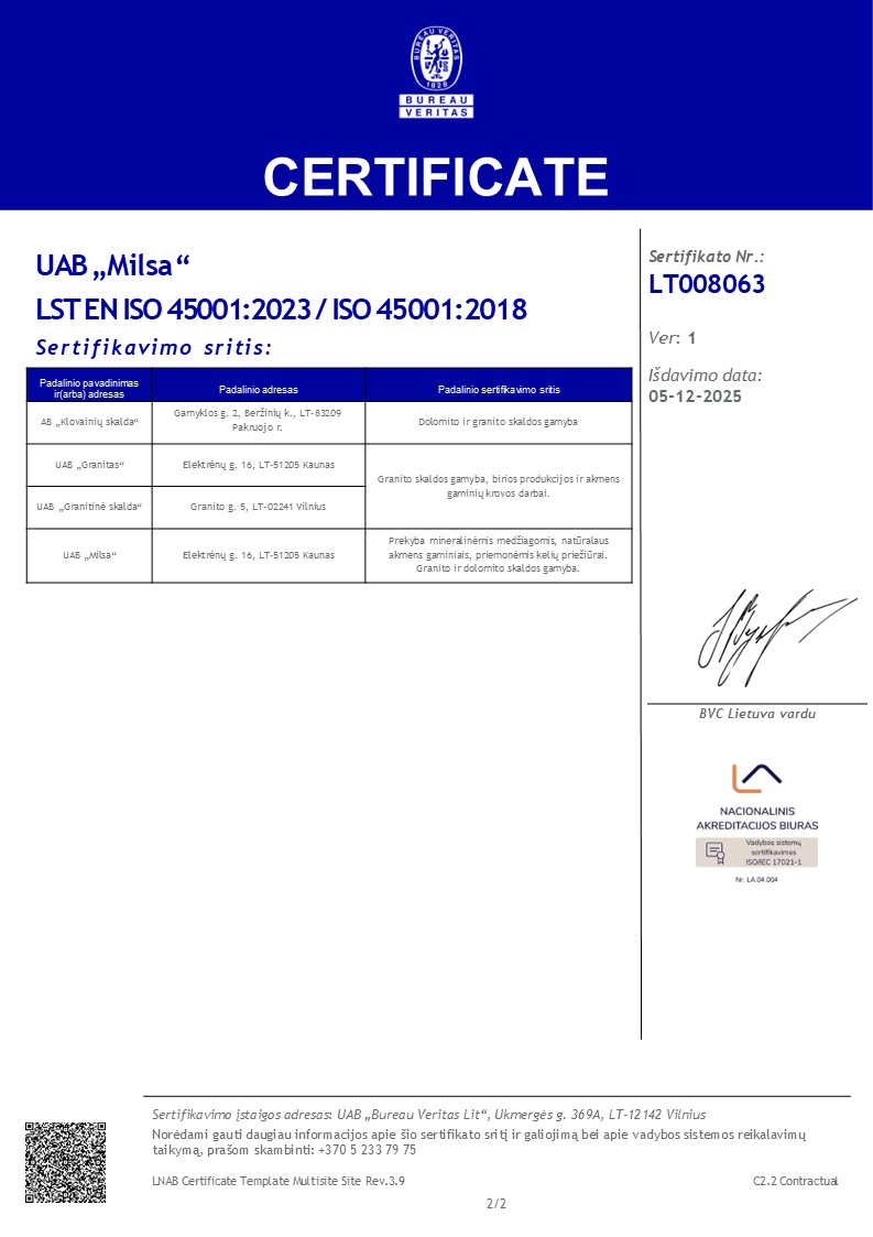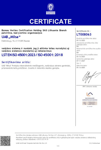 Šiandien bendrovė yra viena didžiausių ir ekonomiškai stipriausių dolomito skaldos gamintojų Lietuvoje. Pagrindinė bendrovės veikla – įvairių frakcijų sertifikuotos dolomito skaldos, granito skaldos, natūralaus dolomito akmens ir dolomitmilčių gamyba.