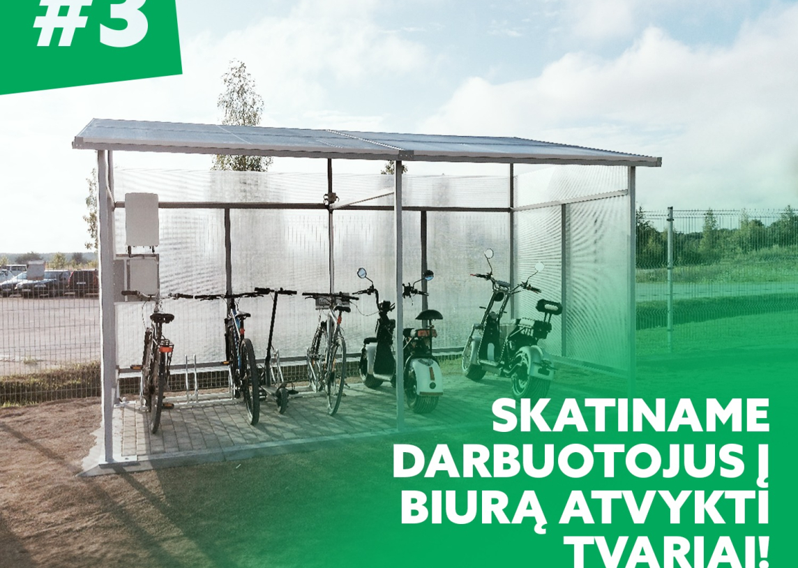 Taip darbuotojai gali dar patogiau rinktis tvarų transportą – ne tik įprastus, bet ir elektrinius dviračius, juos įkraudami ant stogo pagaminama saulės energija. Ilgainiui kartu mažiname į aplinką išmetamų teršalų kiekį ir prisidedame prie švaresnės aplinkos kūrimo.